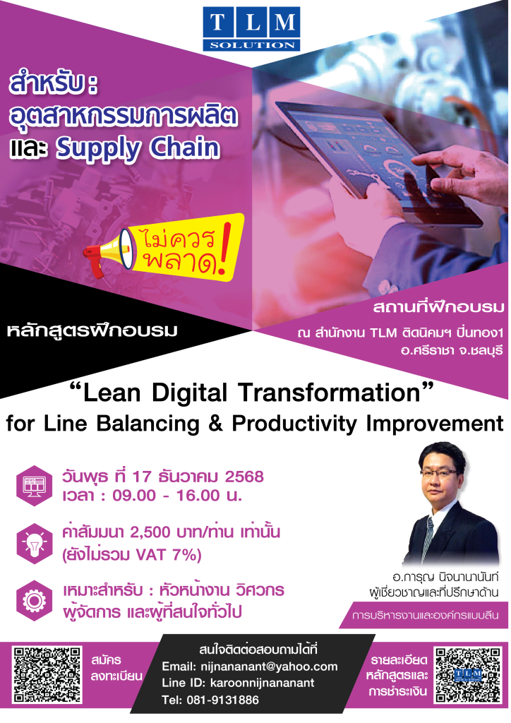 ðāļāļāđāļāļīāļāđāļāđāļēāļĢāđāļ§āļĄāļāļķāļāļāļāļĢāļĄ āļŦāļĨāļąāļāļŠāļđāļāļĢ “Lean Digital Transformation” for Line Balancing & Productivity Improvement