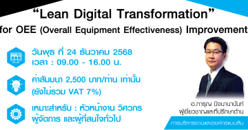 📌ขอเชิญเข้าร่วมฝึกอบรม หลักสูตร “Lean Digital Transformation” for Line Balancing & Productivity Improvement